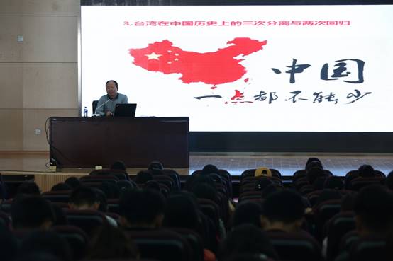 党委副书记、校长成文章讲授《当前两岸关系形势与中央对台政策》专题。他首先介绍了台湾的基本情况并分析了台湾特殊地理位置的重要战略地位,他借助深厚的历史学功底将台湾问题的前世今生娓娓道来,对当前两岸关系面临新形势、两岸关系面临更多风险和挑战以及新时代中央对台大政方针和重要举措作了深入浅出的讲解和分析,学生们纷纷表示意犹未尽、受益匪浅。