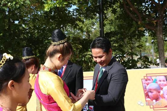 花塔、拴线祝福表达了老挝友人对到场的各领导、嘉宾深切的祝福,祝愿朝岁平安喜乐,万事顺遂称心。