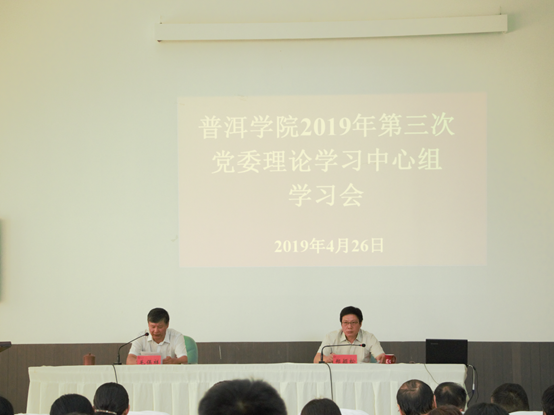 为深入学习贯彻习近平总书记关于加强学校思想政治工作的重要论述,切实把思想和行动统一到党中央决策部署上来,2019年4月26日下午,学校在和谐楼二楼会议室召开2019年第三次党委理论学习中心组学习(扩大)会,专题学习习近平总书记在学校思想政治理论课教师座谈会上的重要讲话精神。党委理论学习中心组成员、副处级以上中层干部、马克思主义学院全体教师参加会议。党委书记毛保祥主持会议。