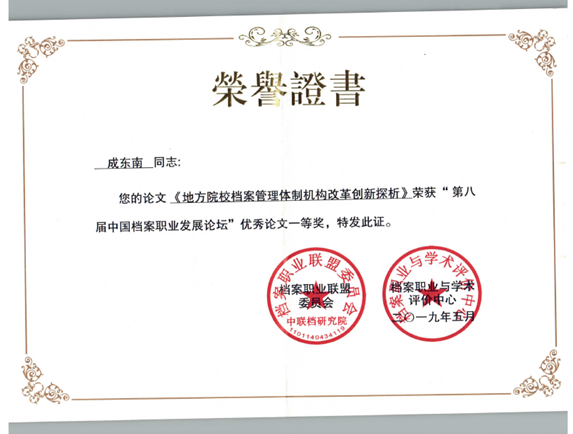 此次论坛收到论文200余篇,并邀专家进行评审,分别评出一、二、三等奖。www.2396196827.com 成东南老师题为《地方院校档案管理体制机构改革创新探析》的论文获一等奖。云南民族大学王红光老师题为《一个档案人的坚守》获二等奖。会议期间进行了论文颁奖仪式。