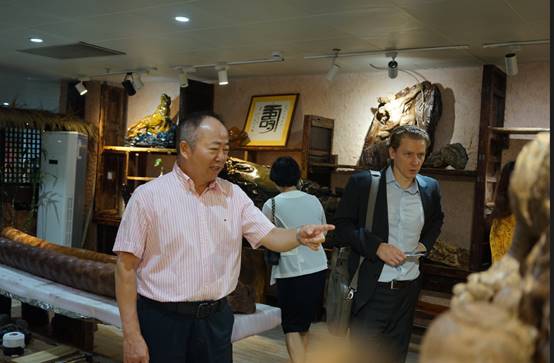 在成文章校长的陪同下,Jeff David(戴杰豪)一行参观了图书馆、绝版木刻精品展览馆、湄园、校内茶叶和咖啡实习实践基地。