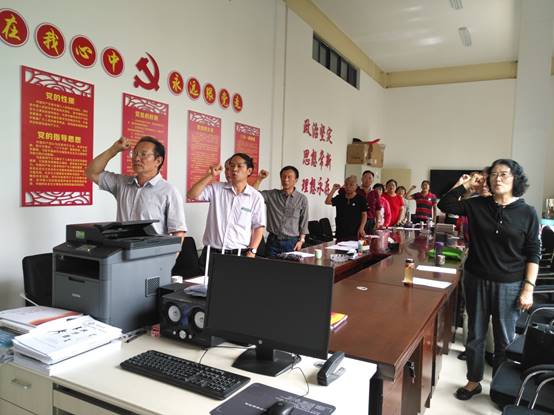 会上,结合庆祝建党98周年,与会党员重温了入党誓词,并合唱了歌曲“没有共产党就没有新中国”。