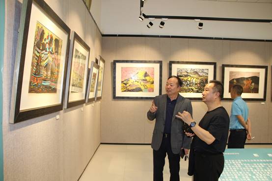 在绝版木刻精品展览馆,张金涛对学校在绝版木刻领域取得的成绩给予肯定,并希望学校抓住机遇,培育特色,为建设一所地方高校不断努力。