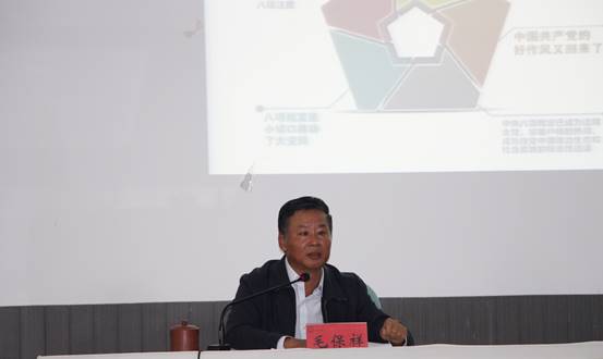 毛保祥围绕“守初心、担使命,找差距、抓落实”的总要求,在深入学习系列原文原著,参加学习研讨,对照党章党规找差距,开展党建工作调查研究的基础上,分别从深刻学习领会习近平总书记关于“不忘初心、牢记使命”的重要论述;悟初心、找差距,践行使命担当;整改的对策和措施;把践行党的根本宗旨转化为自觉行动等四个方面为与会党员干部、师生党员讲授专题党课。