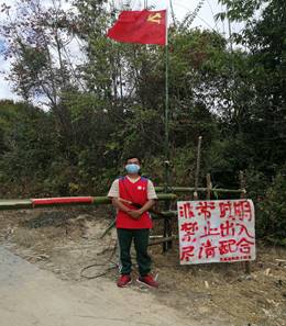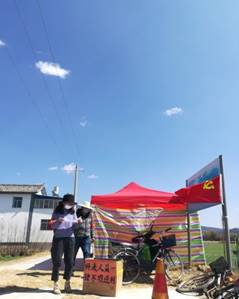 云南省玉溪市峨山县小街镇大海洽村委会阿依村,我校理工学院施伊在村口执勤。