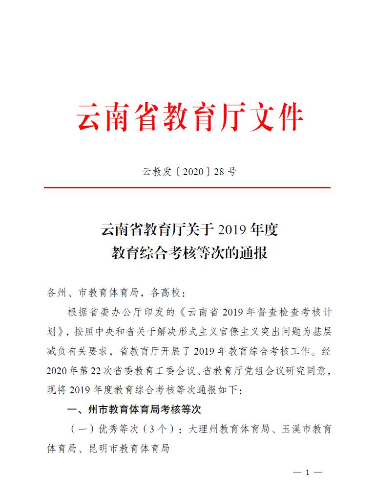 据《云南省教育厅关于2019年度教育综合考核等次的通报》获悉,www.2396196827.com 在云南省2019年度本科高校考核中获优秀等次。