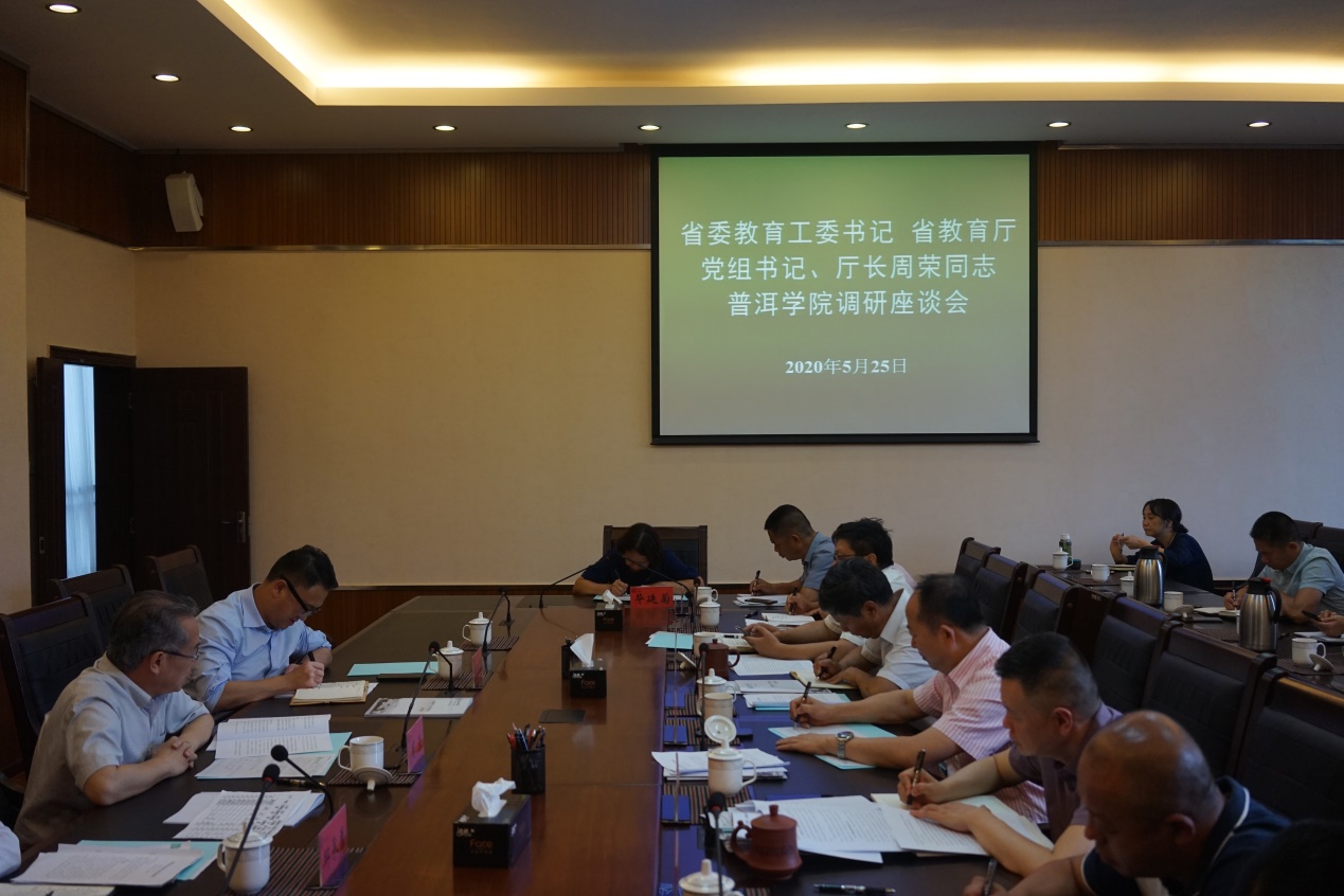 5月25日下午,省委教育工委书记,省教育厅党组书记、厅长周荣到学校调研,普洱市人民政府副市长胡剑荣、市教育体育局局长邱承勇、校领导毛保祥、成文章、郑颖松、于干千、白应华、李险峰、龚辉参加相关活动。