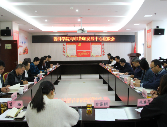 学校党政办公室、教务处、科学技术处、就业处、发展规划中心、咖啡学院、生物与化学学院、农林学院负责人与普洱市茶叶和咖啡产业发展中心有关科室负责人参加座谈会。