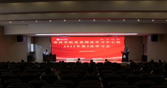为深入学习贯彻党的十九届六中全会精神和省第十一次党代会精神,深刻理解党百年奋斗的历史逻辑、理论逻辑、实践逻辑,统一思想、坚定信心,振奋精神、凝心聚力,在全面建设社会主义现代化国家新征程上,在奋力开创云南跨越式发展新局面中,注入我们强大的思想和行动力量。2022年3月29日,我校在图书馆报告厅召开党委理论学习中心组2022年第3次学习会。