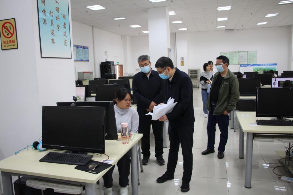 2022年4月4日上午,党委副书记、院长马文会调研指导学校图书馆疫情防控工作、日常服务工作。党委委员、副院长白应华及相关部门负责人随同调研。