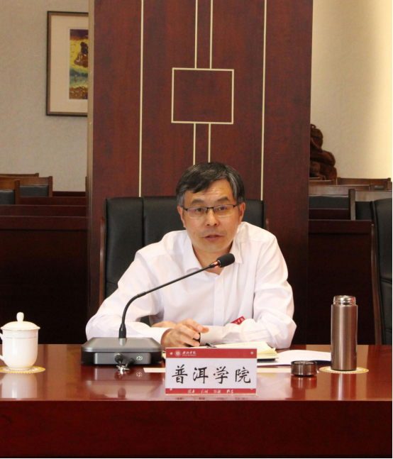普洱市发展改革委产业发展科科长娜秀,市发展改革委产业发展科工作人员罗晰,普洱市茶咖发展中线企业服务科科长胡伟,云南爱伲农牧(集团)有限公司总经理邓家有,普洱市质量技术监督综合检测中心综合业务部长李俊彦,我校相关部门负责人参加会议。