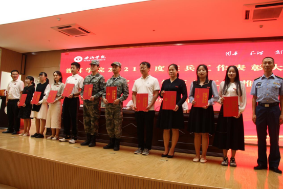 为表彰先进,树立典型,有效推动学校征兵工作,2022年5月12日下午,学校举行2021年度征兵工作表彰大会暨2022年度下半年征兵工作推进会。党委副书记郑颖松出席并讲话,党委委员、副院长李险峰主持会议。普洱军分区动员处处长孙运树,思茅区委常委、武装部部长何毅,普洱军分区动员处参谋汪琳出席会议。