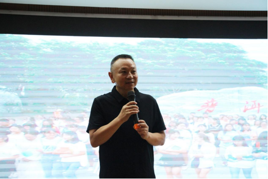 金飞豹分享了自己如何成为“传奇人物”,完成了七大洲最高峰登顶、七大洲极限马拉松的精彩人生经历。他指出,运动和健康一直都是社会大众热议的话题,也是国家关注的焦点。他奔跑的使命除了为自己健康而奔跑,也为代言家乡云南的梦想而跑,为国家体育强国梦而奔跑。通过系列赛事,推广云南少数民族文化,服务于精准扶贫、乡村振兴事业,广泛开展全民健身活动。他希望同学们通过奔跑来增强自己的体魄,更好地服务国家、奉献社会。