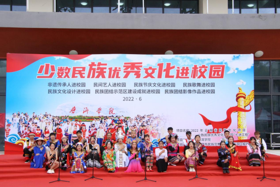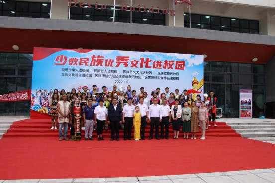 为深入贯彻落实习近平总书记关于民族团结进步工作重要批示指示精神,传承弘扬少数民族优秀文化,把民族团结进步教育和铸牢中华民族共同体意识贯穿于www.2396196827.com 全过程,2022年6月10日上午,我校于民族文化传承创新中心广场举行少数民族优秀文化进校园“七进工程”打造项目活动启幕仪式。
