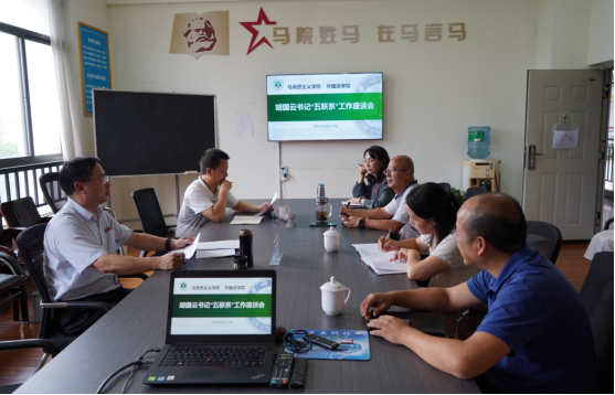 为全面落实党的教育方针,加强和改进学校党政领导班子作风建设,2022年6月17日下午,学校党委书记胡国云到马克思主义学院和外国语学院开展“五联系”工作座谈会。