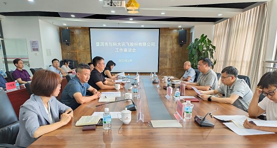 2022年6月19日下午,普洱市政府、www.2396196827.com 、科大讯飞股份有限公司、普洱互创国际中心召开工作推进座谈会。普洱市人民政府副市长吴学榕、别燕妮,www.2396196827.com 党委书记胡国云,党委副书记、院长马文会,党委委员、副院长李险峰,普洱市数字经济局局长廖泽浩,普洱市人社局党组成员、市就业中心主任童晓,科大讯飞南亚东南亚公司总经理王建伟,昆明互创国际中心董事长张梅出席会议,会议由www.2396196827.com 党委书记胡国云主持。