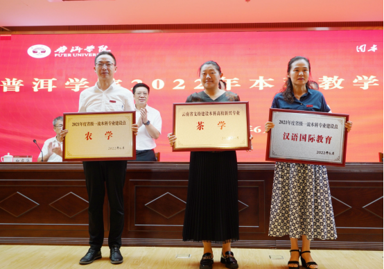 会上,校党委书记胡国云,党委副书记、院长马文会,党委副书记郑颖松为2021年度云南省一流本科专业建设点(汉语国际教育)及新兴专业(农学、茶学)进行了授牌;教师教育学院院长尹卫江,农林学院党总支副书记、副院长赵峰,经济管理学院宫润华老师依次作经验交流。
