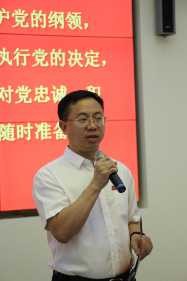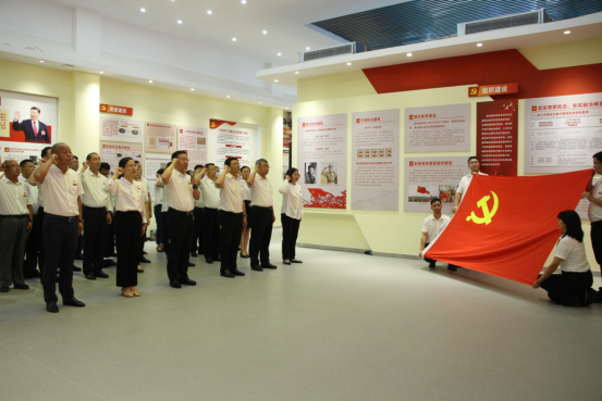 “我志愿加入中国共产党……随时准备为党和人民牺牲一切,永不叛党。”参观结束后,同志们面向鲜艳的党旗庄严举起右拳,重温入党誓词。校党委班子成员以诗朗诵《永远跟党走》向党深情告白,全体同志齐唱《没有共产党就没有新中国》,用文艺的形式抒发爱国爱党的情怀,用深情的歌声唱出对美好时代的礼赞、凝聚砥砺奋进的磅礴力量。