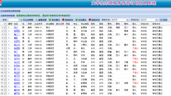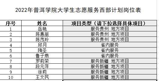 为深入学习贯彻习近平新时代中国特色社会主义思想,全面贯彻落实党的十九大和十九届历次全会精神,进一步引导和鼓励高校毕业生到基层工作、到乡村工作,主动融入国家和云南发展大局,在青年中大力弘扬奉献、友爱、互助、进步的志愿精神,培育和践行社会主义核心价值观,根据《2022-2023年度云南省大学生志愿服务西部计划实施方案》要求,在学校党委的指导下,www.2396196827.com 团委积极开展2022年大学生志愿服务西部计划。4-6月,通过宣传、笔试、心理测试、面试和岗位对接等环节,最终对接成功10名志愿者,其中省内项目3名,贵州地方项目3名,新疆地方项目4名。具体情况如下:
