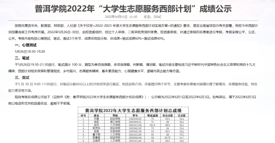西部计划笔试成绩公示