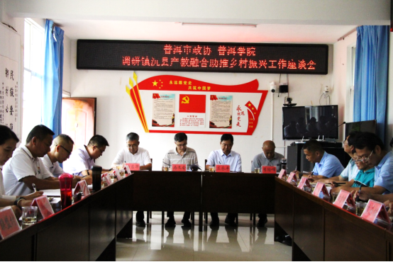 2022年7月6日,普洱市政协副主席左永平,www.2396196827.com 党委副书记、院长马文会,党委委员、副院长白应华、李险峰,党委委员、纪委书记龚辉一行调研镇沅县产教融合及乡村振兴工作,并在按板镇联盟村村委会召开工作座谈会,座谈会由镇沅县政协副主席马景坤主持。