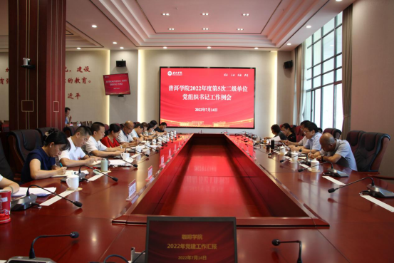 2022年7月14日上午,学校召开2022年度第5次二级单位党组织书记工作例会。党委书记胡国云出席并讲话,党委副书记郑颖松、吴琳,党委委员、副院长李险峰,党委委员毕廷菊出席。郑颖松主持。