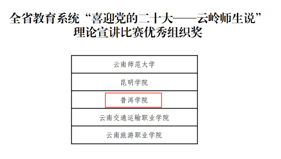 我校获全省教育系统“喜迎党的二十大——云岭师生说”理论宣讲比赛优秀组织奖。