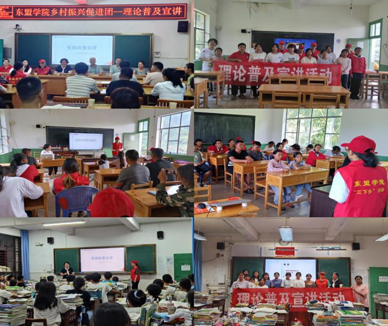 “东盟学院乡村振兴促进团”师生分别在宣河村、镇沅一中、按板中学等地积极开展国家资助政策宣讲,促进团成员中获助的同学结合自己在国家资助政策的帮助下安心学习、健康成长的亲身经历,帮助学子和家长们了解国家助学政策,解除孩子上学的后顾之忧。