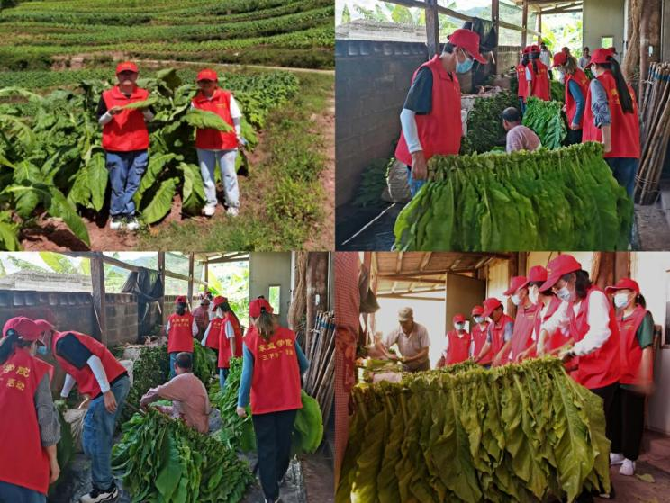 走到田间地头去,走到百姓中间去。“东盟学院乡村振兴促进团”师生们走进宣河村烤烟种植基地,参观烤烟种植情况、烤烟房等,在村民手把手指导下队员们积极投入到烤烟农活中去,通过劳动实践增强同学们理解劳动、尊重劳动、热爱劳动的意识。