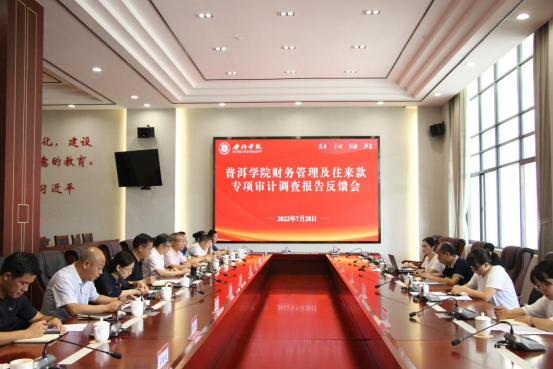 2022年7月28日下午,我校召开财务管理及往来款专项审计调查报告反馈会。校党委书记胡国云,党委副书记、院长马文会,党委副书记吴琳,党委委员、副院长白应华、李险峰,普洱市审计局党组成员、经责办主任、审计组组长陶军出席会议。李险峰主持会议。