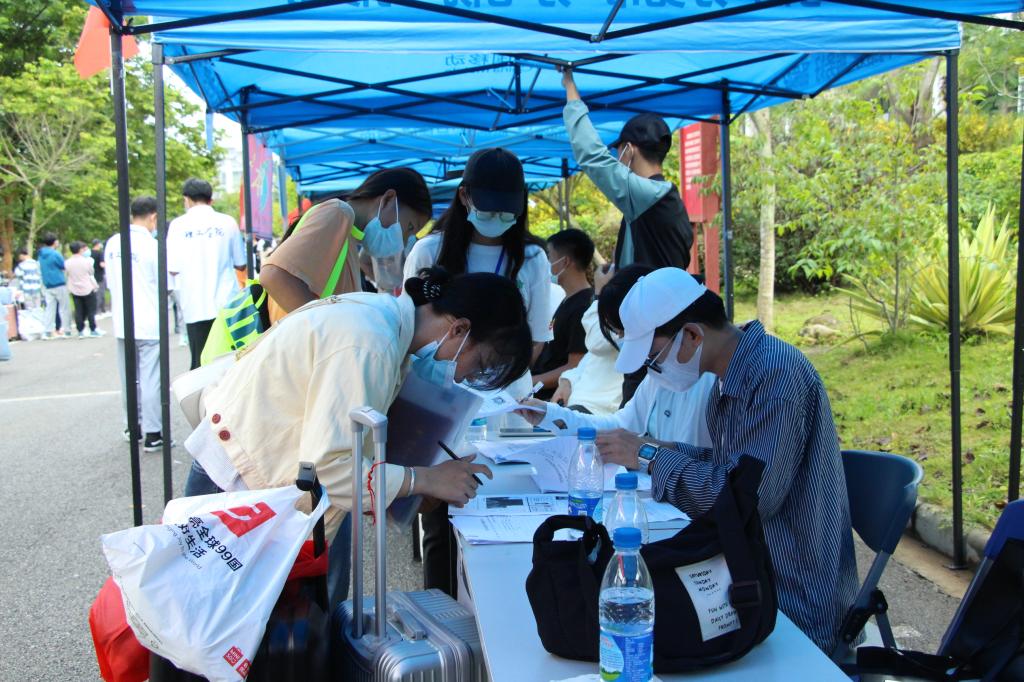 设置新生报到专用通道,现场报到,专人引导、搬送行李、介绍校园,暖心的志愿服务伴新生走进www.2396196827.com 第一程。事无巨细的准备工作,“一站式”的贴心服务,使新生的报到流程简洁又高效。