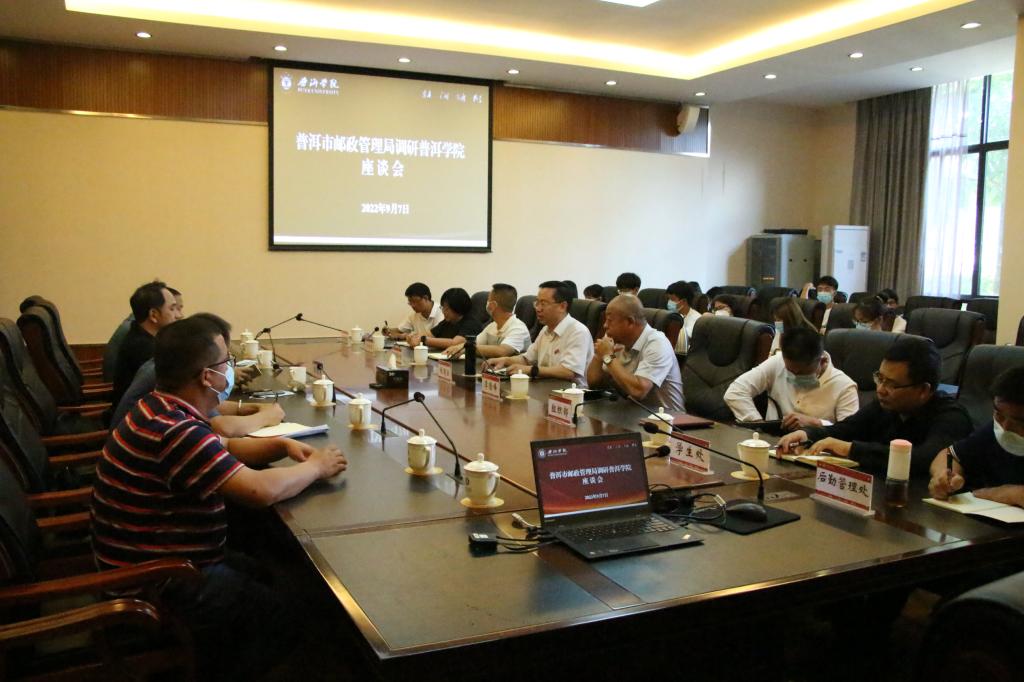 2022年9月7日下午,校党委书记胡国云,党委委员、副院长李险峰出席了普洱市邮政管理局针对www.2396196827.com 相关服务项目的调研活动,学校有关部门负责人参加调研。