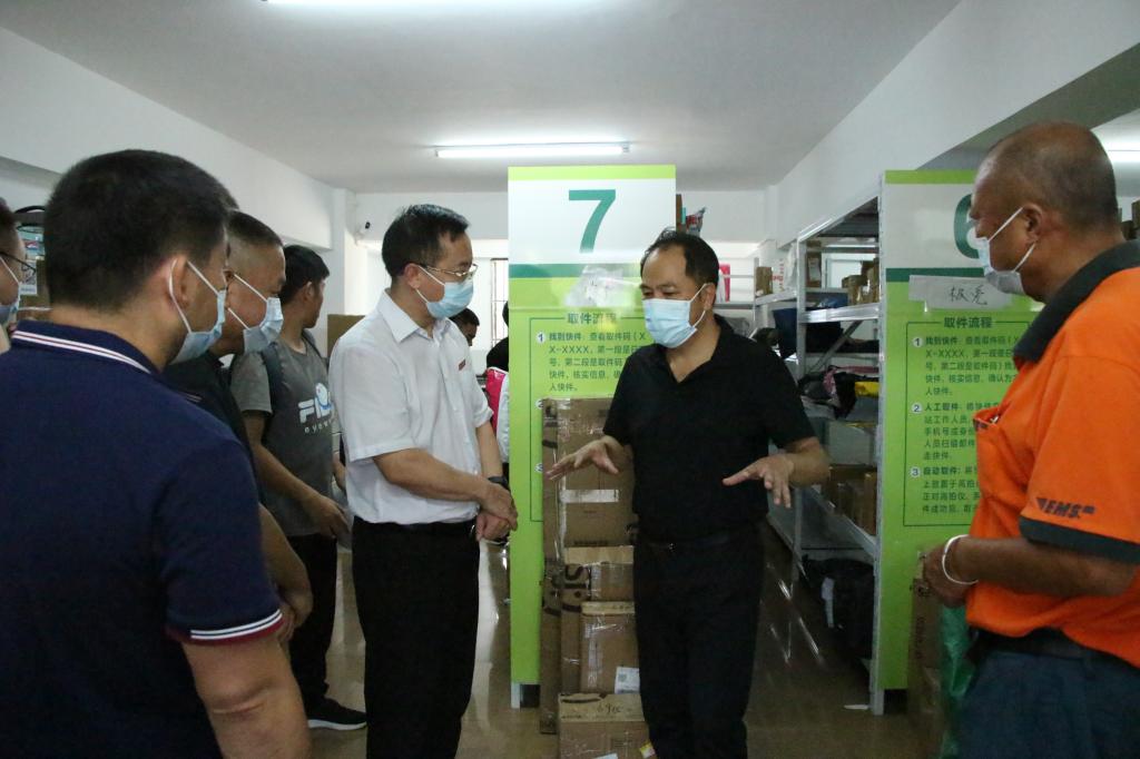 胡国云对市邮政管理局前期所做的工作给予了充分肯定。他指出,当前疫情防控形势依然严峻复杂,要严格落实场所、邮件消杀要求,确保万无一失。他希望,市邮政管理局能统筹各方力量,落实重点工作,在巩固现有成绩的基础上,加大与各品牌快递企业的合作,把工作做深做细做实,为服务师生、服务地方经济发展作出更大贡献。