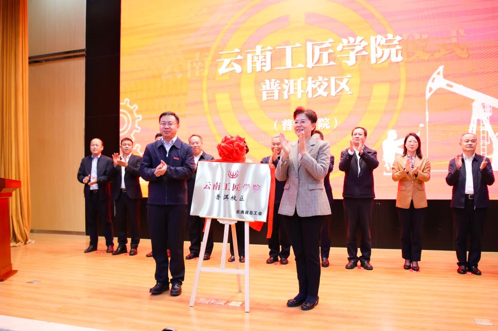 10月26日,云南工匠学院揭牌仪式在云南工商学院举行,省人大常委会副主任、省总工会主席王树芬出席揭牌仪式并为6家工匠学院揭牌。学院党委书记胡国云率队参加揭牌仪式。