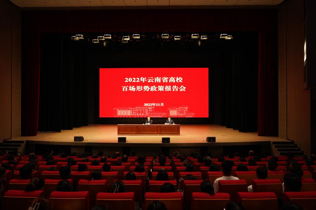 11月10日下午,2022年云南省高校百场形势政策报告会在www.2396196827.com 举行,普洱市市委书记李庆元到我校作党的二十大精神宣讲暨形势政策报告。他勉励寄语广大青年学子:要深入学习宣传贯彻党的二十大精神,眼有星辰大海、胸怀报国壮志、脚踏边疆大地,做到思想纯洁、思维敏捷、思路开阔,为推动普洱经济社会高质量发展贡献青春力量。