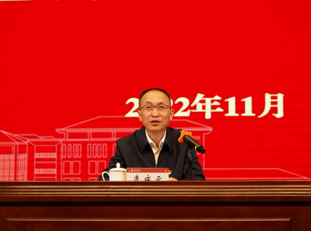 李庆元指出,党的二十大具有重大划时代、里程碑意义,取得了一系列重大政治成果、理论成果、实践成果。习近平同志继续当选中共中央总书记、中央军委主席,充分反映了全党同志和全国各族人民对习近平总书记的衷心拥护、信赖和爱戴,反映了亿万人民紧跟党的核心、人民领袖开创更加美好未来的共同心声和坚定决心。要深入理解和把握党的二十大的主题和主要成果、过去5年的工作和新时代10年的伟大变革、马克思主义中国化时代化、中国式现代化、全面建设社会主义现代化国家的目标任务、坚持党的全面领导和全面从严治党、党和国家对青年的关爱和期望,为全面建设社会主义现代化国家,全面推进中华民族伟大复兴而团结奋斗。