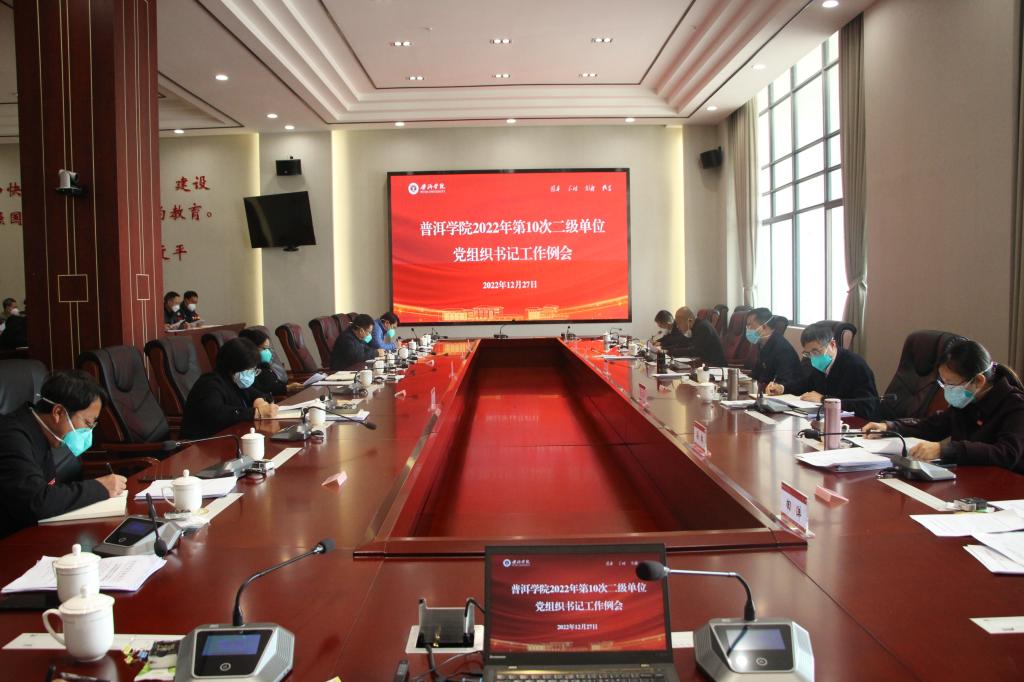 马文会指出,坚持以习近平新时代中国特色社会主义思想为指导,认真贯彻落实党的二十大精神,立足边疆地区,面向南亚东南亚,围绕科技创新、学科建设,具体谋划好2023年重点中心工作,全面提高学校的教学、科研、服务管理能力,不断推动学校各项工作再上新台阶。会议传达学习了习近平总书记在中央农村工作会议上的重要讲话精神;云南省主要领导干部学习贯彻党的二十大精神专题研讨班会议精神;通报了学校近期获奖情况,11月“智慧党建”工作情况。有关部门负责人,各党总支、直属党支部书记参加会议。