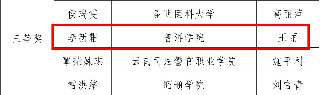 李新霜(指导教师:王丽)获第七届全省学生“学宪法 讲宪法”活动演讲比赛高校组三等奖、胡新月(指导教师:王丽)获第七届全省学生“学宪法 讲宪法”活动知识竞赛高校组优秀奖。