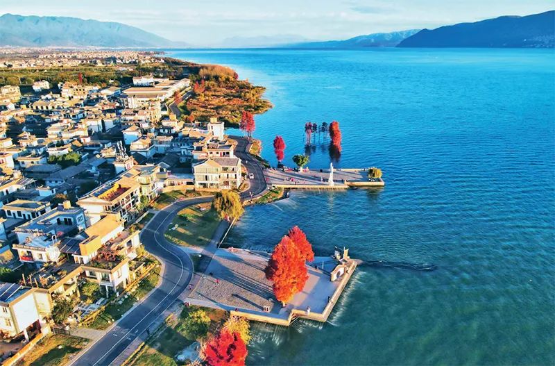 云南省牢记习近平总书记对洱海保护“立此存照,过几年再来,希望水更干净清澈”的嘱托,加大洱海保护治理力度,取得明显成效。图为2022年11月28日,大理白族自治州洱海生态廊道上的龙龛码头。 云南日报供图 黄兴能/摄