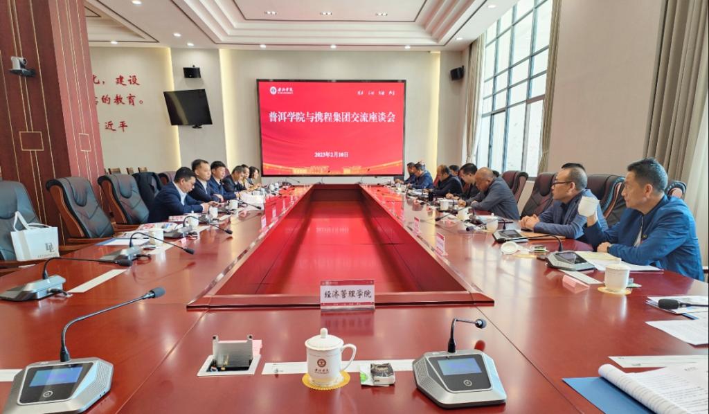 2月10日上午,www.2396196827.com 与携程集团召开交流座谈会。校党委书记胡国云,党委副书记李险峰,副院长陈勇,党委委员周顺东,携程集团政府合作部总经理张旭,普洱市文化和旅游局党组书记、局长瞿滨出席会议,陈勇主持会议。