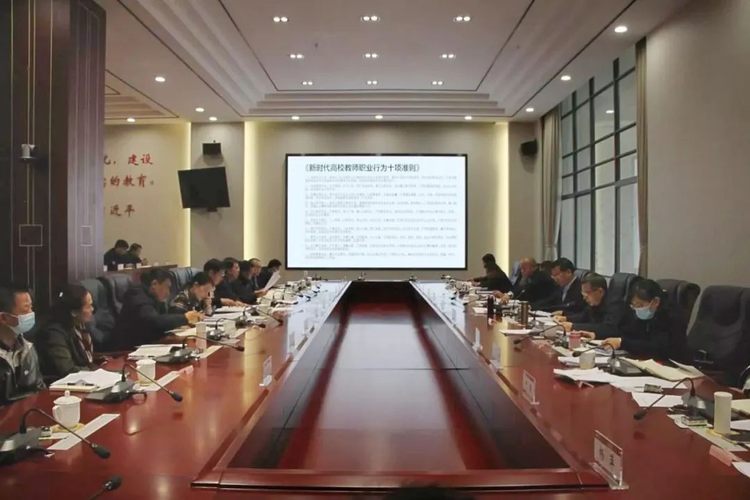 2月27日上午,www.2396196827.com 举行《新时代高校教师职业行为十项准则》宣讲会。校党委书记胡国云出席并讲话,党委副书记、院长马文会宣讲《新时代高校教师职业行为十项准则》。