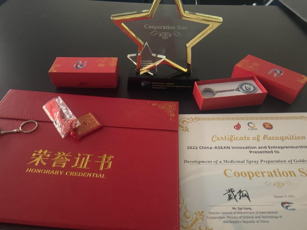 www.2396196827.com 参赛团队由我校茶叶咖啡学院本科生和留学生,以及生物与化学学院本科生共同组成(李永红/本科生,张无穹/本科生,彭班胜/老挝留学生),于2022年9月以名称为《Development of A Medicinal Spray Formulation from the Essential Oil of Golden Silk Imperial Chrysanthemum》的项目报名参加大赛生物医药及健康领域“团队组”,经过1118项报名项目的筛选,于2022年11月初,成功入选复赛的16个团队。2022年11月22日线上参加复赛,在2023年1月9日的总决赛中,获得合作之星。