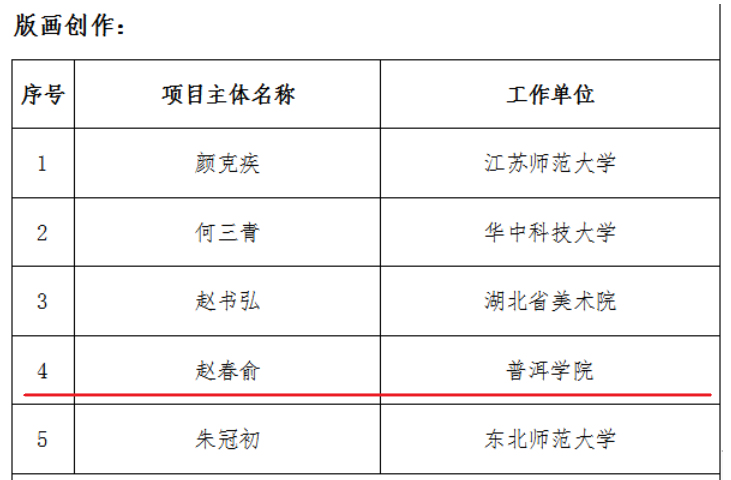 近日,国家艺术基金管理中心公布了《国家艺术基金(一般项目)2023年度资助项目名单》,我校艺术学院赵春俞老师喜获1项青年艺术创作人才资助项目。