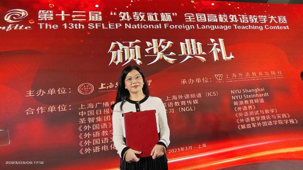 2023年3月3日—5日,第十三届“外教社杯”全国高校外语教学大赛(大学英语组)全国决赛、总决赛在上海外国语大学成功举办。大赛分为综合课组和视听说课组,外国语学院老师林靖代表云南高校教师参赛,与全国30个赛区脱颖而出的优秀选手同台竞技,最终荣获本届大赛综合组三等奖。