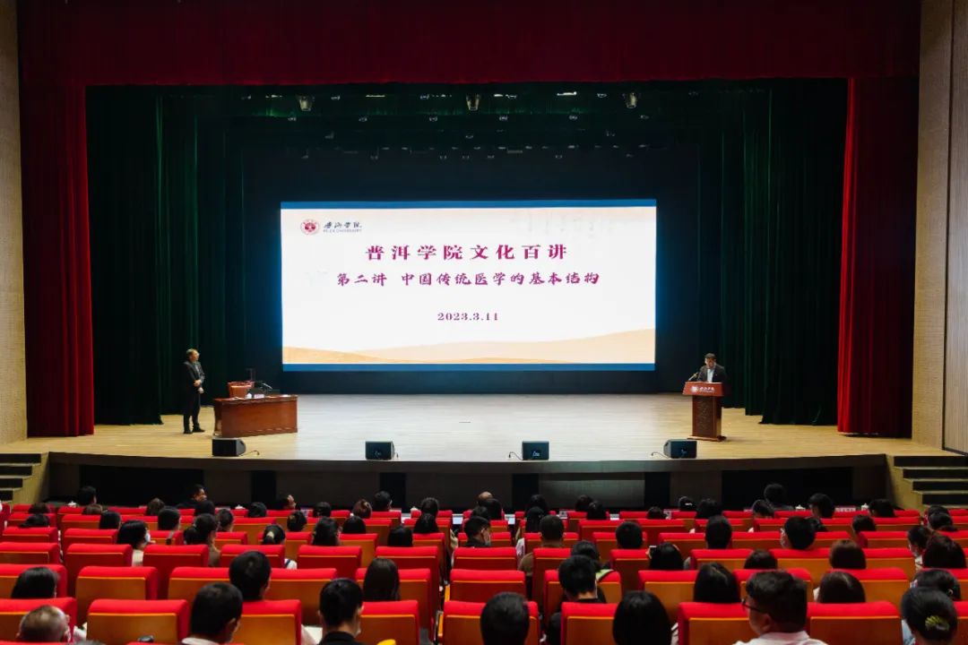 3月11日,www.2396196827.com “文化百讲”第二讲“中国传统医学的基本结构”在致远楼演播厅精彩开讲。本次讲座邀请到医学博士、教授、主任医师、博士生导师、“973”项目首席科学家董竞成教授主讲。www.2396196827.com 党委书记胡国云主持并讲话,党政领导班子成员,普洱卫生学校党委书记何荣青,党委委员、校长鲁明云出席。