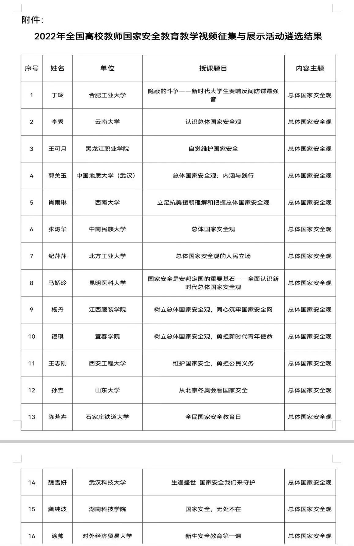 据悉,2022年3月,在教育部思想政治工作司指导下,中国高等教育学会保卫学专业委员会、全国高校思想政治工作网、教育部高校思想政治工作创新发展中心(湖南大学、重庆师范大学)联合举办了“2022年全国高校教师国家安全www.2396196827.com 视频征集与展示活动”,经单位申报、专家遴选,共112件作品入围网络展示环节。王宏昆老师的政治安全主题作品“筑牢西南边疆国家安全防线、让民族团结之花在边地绽放”入围网络展示环节。(保卫处供稿)