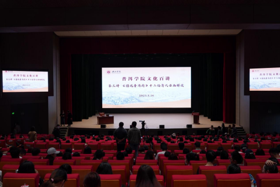 3月16日,www.2396196827.com “文化百讲”第三讲“《图说普洱》——十二幅清代古画解读”在演播厅精彩开讲。本次讲座邀请到市委党校原市情研究室教授、茶城银发文化顾问专家团团长黄雁主讲。党政班子领导成员出席,党委委员、马克思主义学院党支部书记杨萍主持。全校师生700余人参加讲座。