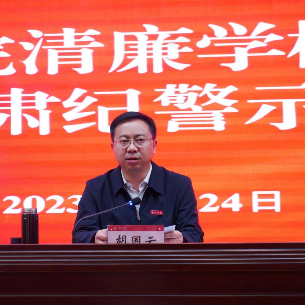 胡国云强调,全面从严治党永远在路上,党风廉政建设永远在路上。我们要更加紧密地团结在以习近平同志为核心的党中央周围,扎实推进清廉学校建设,筑牢拒腐防变的思想道德防线,努力做让党放心、让人民满意的“四有”好老师。