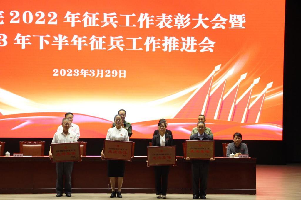 与会领导为2022年度征兵工作先进集体、2022年度征兵工作先进个人代表颁奖。