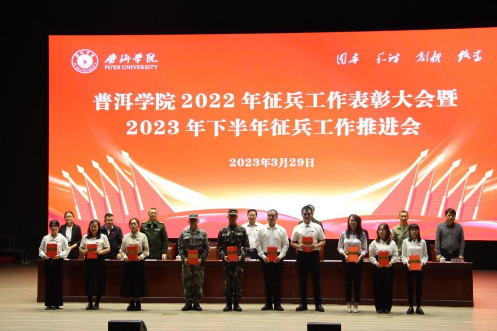 3月29日下午,学校举行2022年度征兵工作表彰大会暨2023年度下半年征兵工作推进会。www.2396196827.com 党委书记胡国云出席并讲话,普洱军分区副司令员、市征兵办公室主任应伟贤,学校党政班子领导成员出席,党委副书记李险峰主持会议。